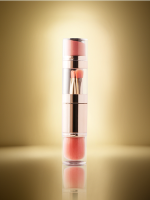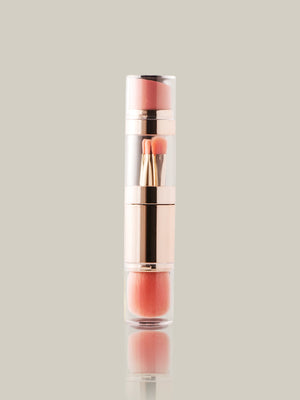 Con cerdas naturales suaves y que no irritan, esta brocha 5 en 1 se convierte en tu aliado perfecto para un look impecable en cuestión de segundos. Y su packaging en forma de cápsula es práctico y adorable.